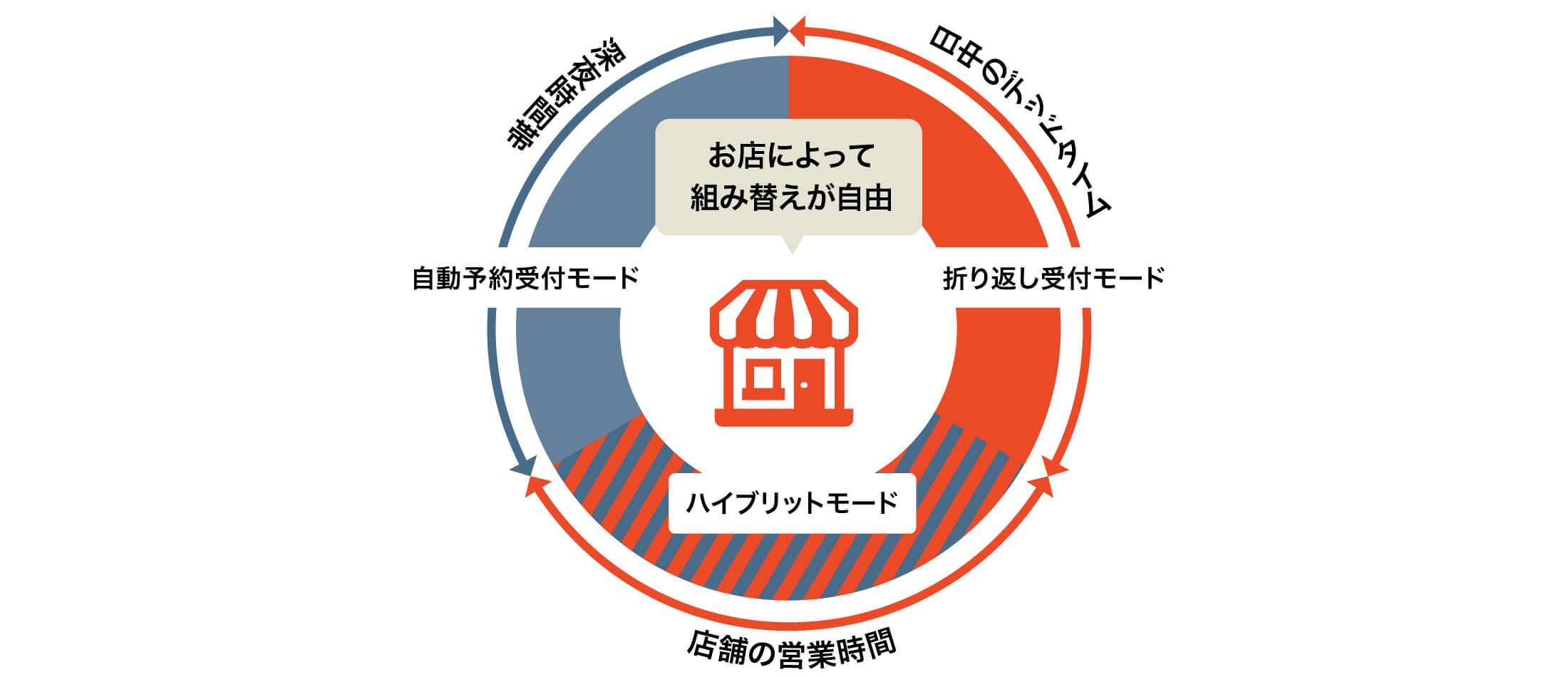 よやくるーは電話対応だけでなく、各種グルメ媒体からのネット予約やメール・FAX・SNSでの予約など、多様な経路の予約に対応しています。すべての経路を統合してリアルタイムで空席在庫を管理できるため、当日予約も問題なし。ダブルブッキングの心配もありません。